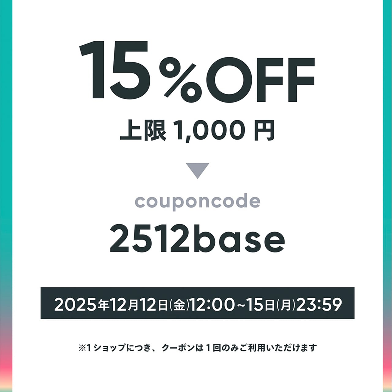 ご注文後にメールにて詳細とクーポンコードをお送り致します。